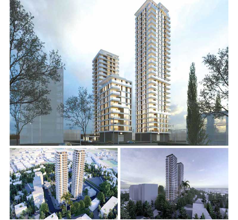 2 מגדלים ובניין המשלבים מגורים ומסחר