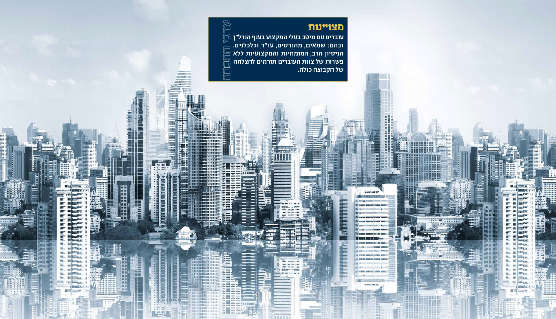 פתרונות מקצועיים תחת קורת גג אחת: ייעוץ ראשוני, תכנון קפדני, ניהול מקצועי ושקוף, ביצוע בפועל של הבנייה עד להשלמת הפרויקט